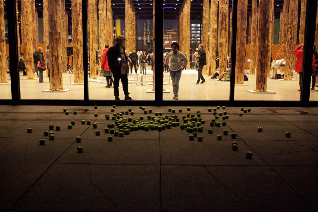 The temporary presence of tree trunks inside the glass architecture of the Neue Nationalgalerie – David Chipperfield’s intervention Sticks and Stones – creates a strange relationship with the existing surrounding environment. They serve both as actual and symbolic representations of nature in the space. They are mediators of the tension constantly generated between architecture and nature, between the interior and exterior spaces.