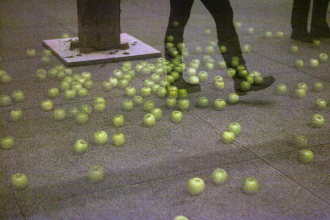 The trunks were taken from spruce trees, the species associated with Christmas trees. In early modern Germany, Christian families brought this type of tree into their homes during the Christmas season and decorated them with fruit and sweets. This work considers the relationship of the spruce trunks and the building, imagining the museum as a huge Christmas tree decorated by the architecture itself. With this in mind, it is my intention to offer small irritations, which accentuate and mediate this idea in a symbolic manner.