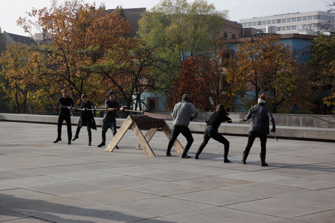 FRIDAY / 31.10.2014 / 12:00 – 12:30 Fiege, Fiege, Herz, Ivanova, Löllmann, Peitersen outside, southern terrace 3. STOCK performance / installation