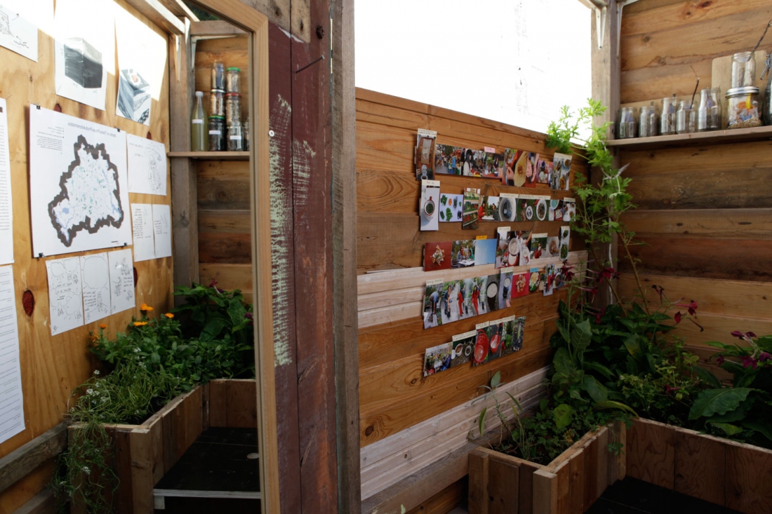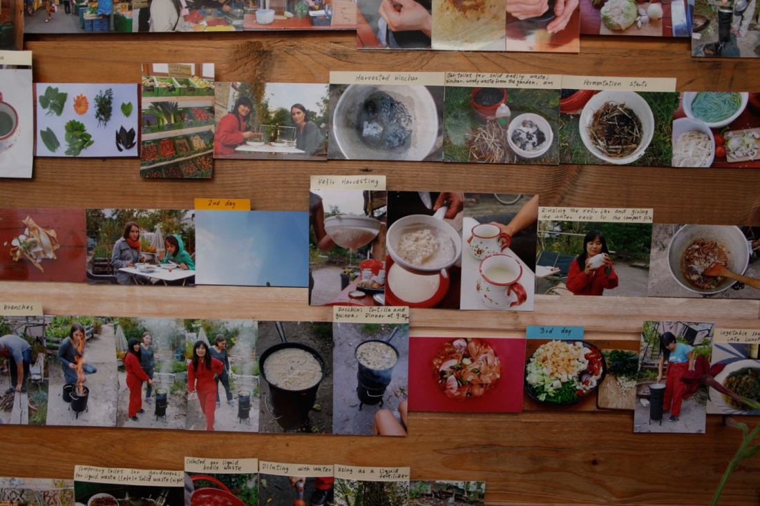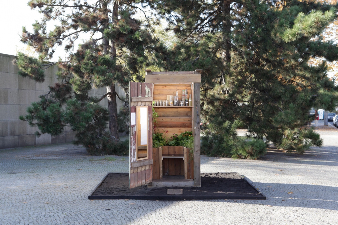 An ordinary, normal, and mundane act, when repeated every day by every single person on the planet, takes on a great deal of power and creates enormous consequences. If this act has unobserved negative effects, we may be silently damaging our civilisation without even noticing. This is precisely what we are doing when we use flush toilets. However simple it may be, each flush of a toilet is linked to a long chain of consequences. Waste doesn’t exist; as a concept, it doesn’t reflect reality. All matter should have a place within a cycle of transformation and be beneficial in all stages. It is aberrant to throw away our body “waste”: the nutrients it contains can support the growth of more food and life. This installation demonstrates an individual’s potential to produce terra preta, the type of extremely fertile dark soil found in the Amazon basin. We carried out a three-day experiment to observe the daily transfers of matter that occur in a basic lifestyle. The documentation of this experiment is exhibited here, along with illustrations showing potential large-scale implications.