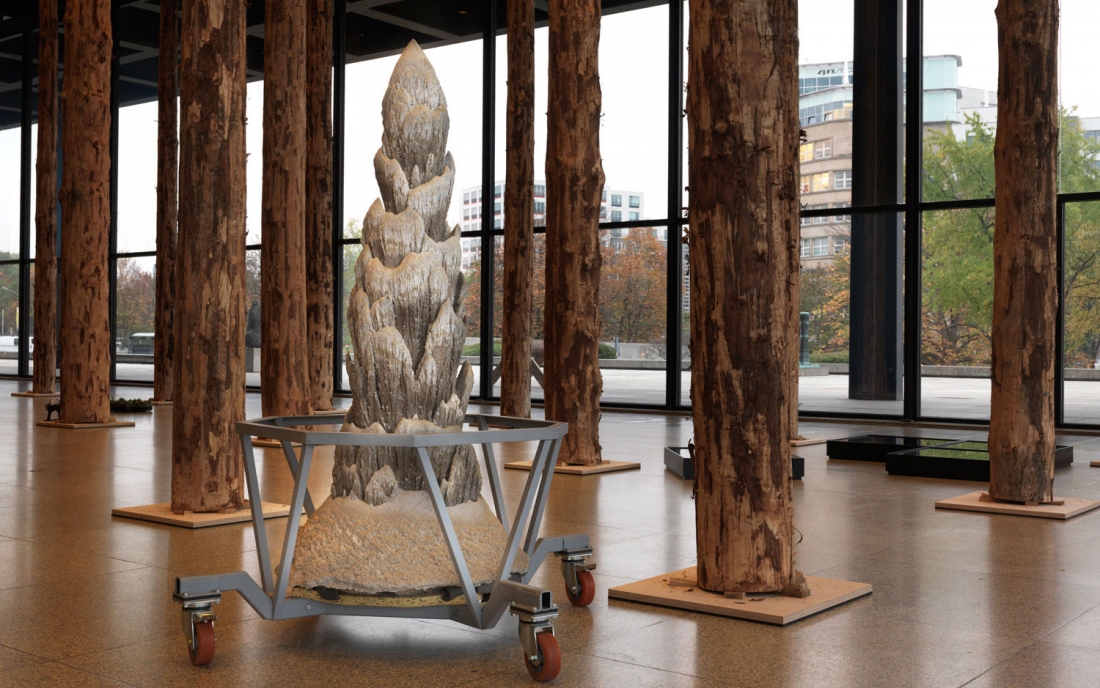 Sie steht in einem Transportwagen. Wie ein im Berg vorgefundenes Mineral, wird sie vor der Neuen Nationalgalerie abgestellt, wie vergessen.