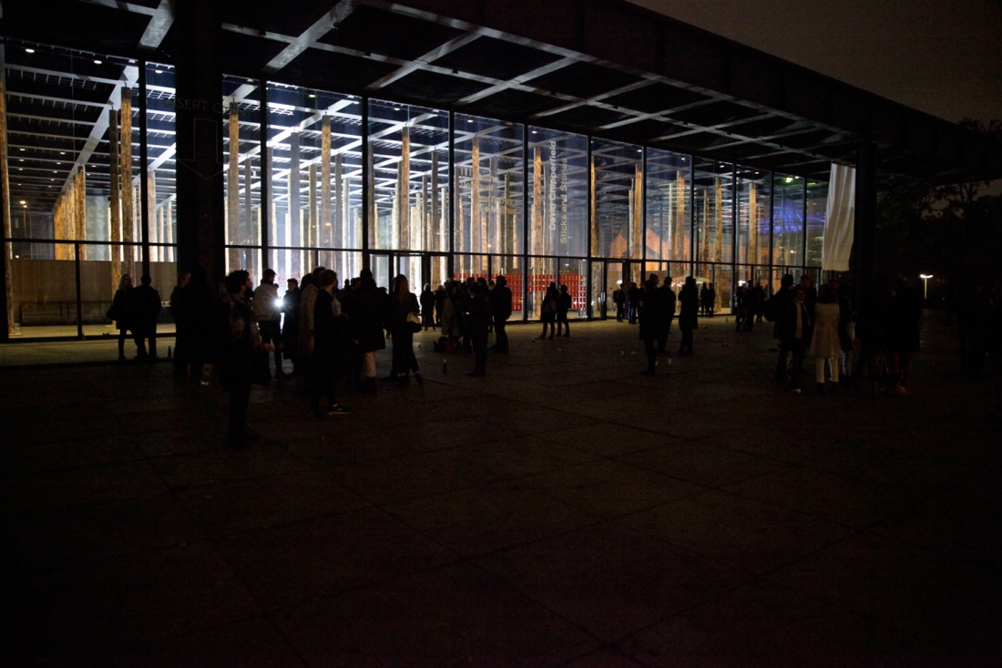 Die Basspartitur, die sich an mathematischen Kalkulationen des Gebäudeplans orientiert, wurde eigens für das Gebäude und anlässlich der Ausstellung komponiert. Die gesammelten Einnahmen werden für die Renovierung der Neuen Nationalgalerie gespendet.