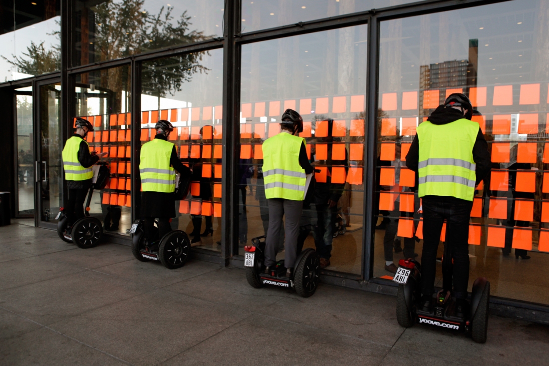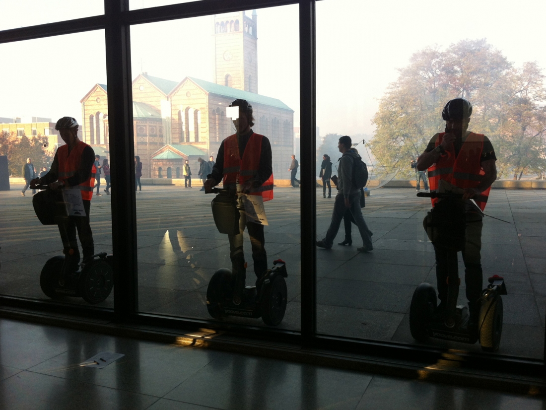This choreographed performance with Segways centres on bodies and technology. It is inspired by the ever-increasing integration of the human body with machines – whether it is the tendency to see the human body like a machine even when it is not attached to a mechanical apparatus, or our desire to use computational metaphors to describe the cognitive functions of the human brain.