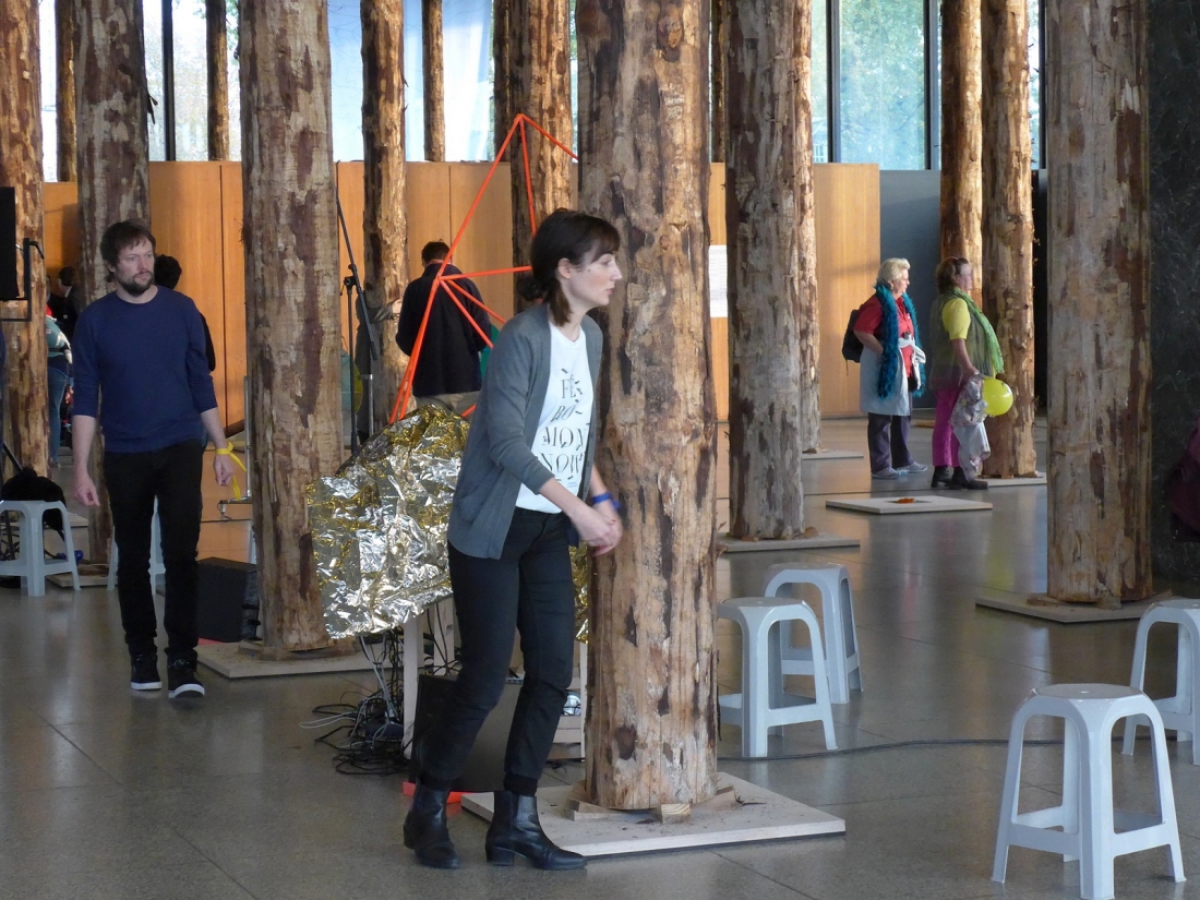Feromon Now is a site-specific game that will be played simultaneously in the artificial, architectural forest of David Chipperfield’s exhibition Sticks and Stones at the Neue Nationalgalerie as well as in a small, natural forest near the museum. The game is open to all festival visitors. One round of the game lasts thirty minutes, one session consists of two rounds with approximately twenty-five minutes for players to switch locations.