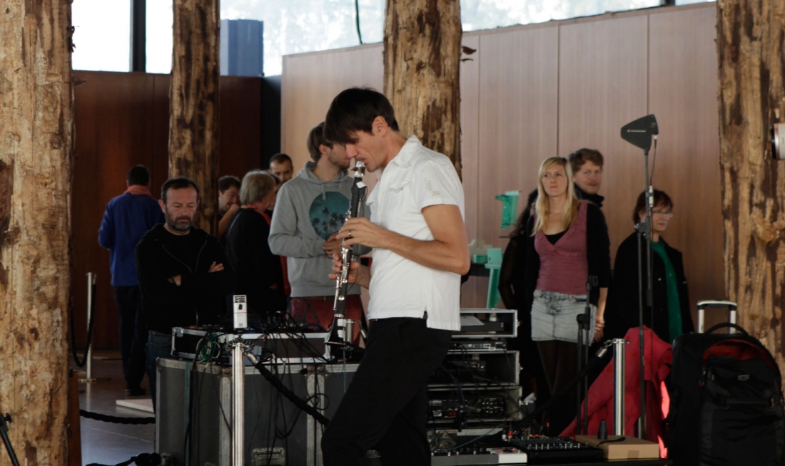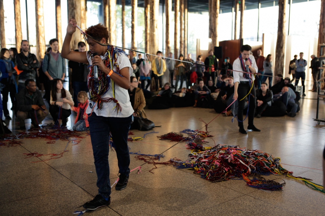 Accompanied by Simon Bauer on harp and Claudio Puntin on the clarinet, the poets will be communicating through poems, language, movement, and music, taking the audience along with them, leaving their imprints and footprints in the woods, tying traces and shoelaces, words and music together – in short, by making a knot: a symbol of connection, an action of entities, and a symbol of their different positions becoming intertwined.