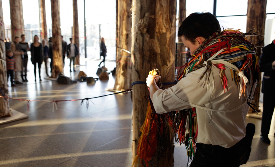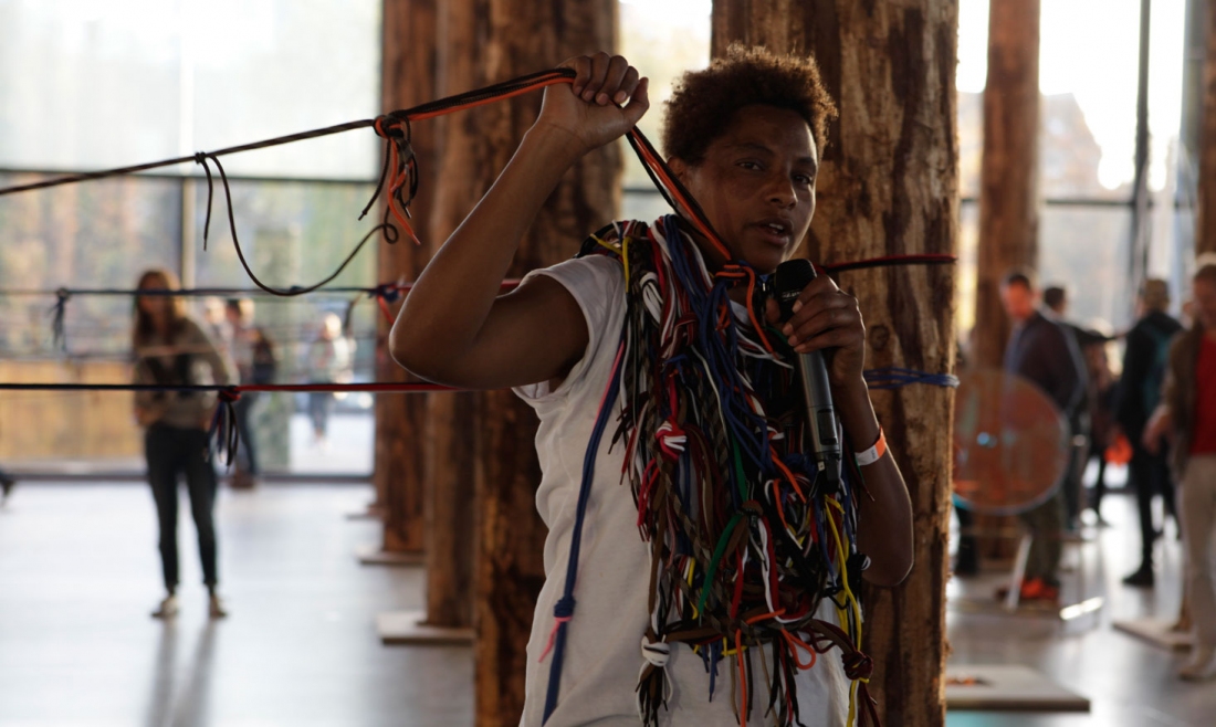 A collaborative poetry performance by Mihret Kebede and Rike Scheffler, this work was inspired by the distance between the poets’ countries. The two poets, one from Addis Ababa, Ethiopia, the other from Berlin, Germany, will attempt to find a path to each other within and through David Chipperfield’s exhibition Sticks and Stones, employing this exercise as a metaphor for the woods of politics and identities we must to overcome in order to meet others.