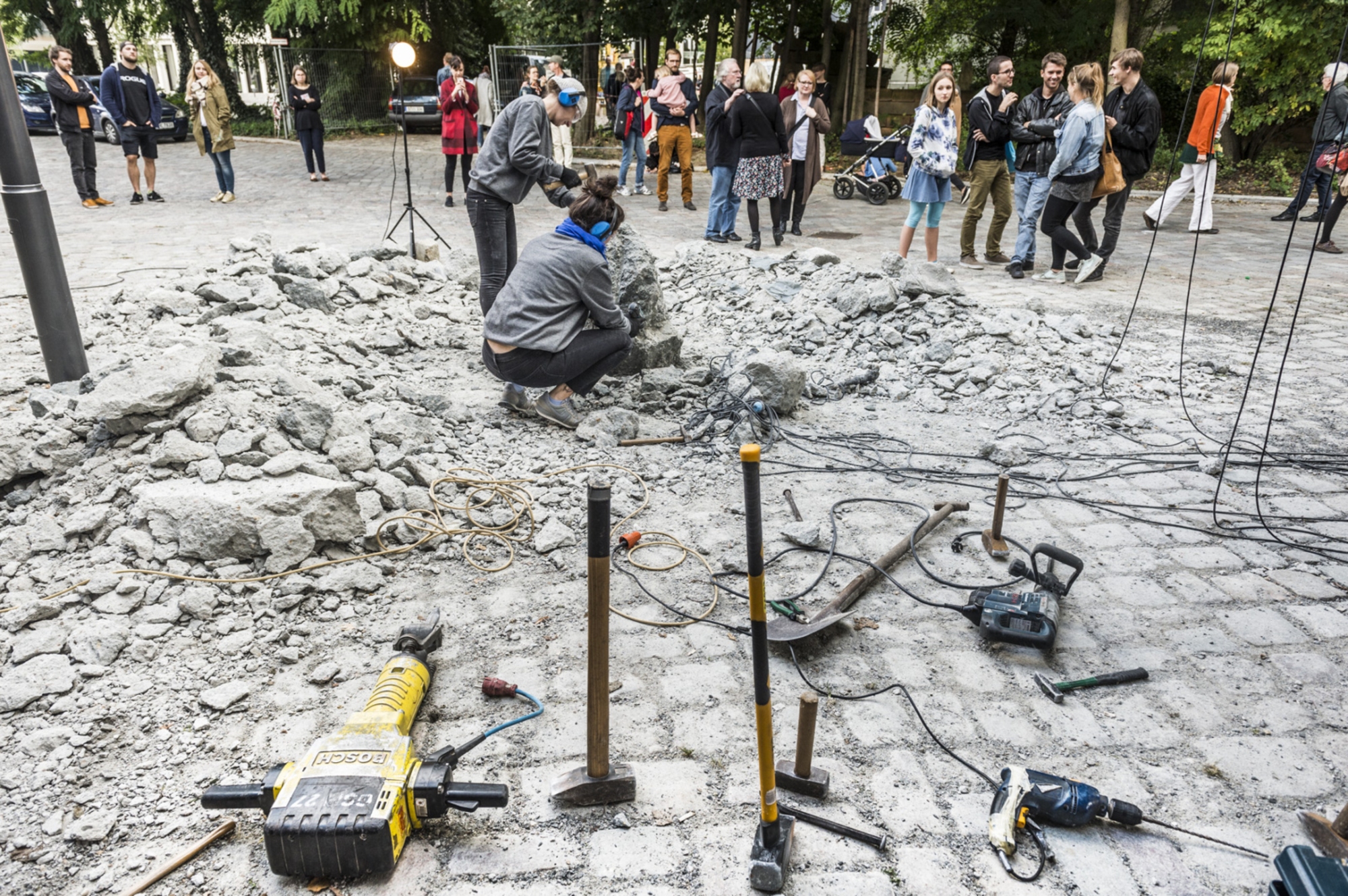Erste Runde: Kann Klang so massiv sein wie fester Beton? Kann er standhalten? Klirren und Gewitter.