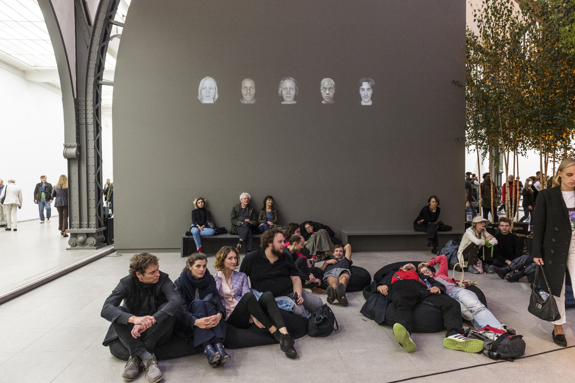 Die fünf Performer*innen haben unterschiedliche Aufgaben innerhalb der orchestrierten Interaktionen untereinander und mit den Besucher*innen. Jede*r der Performer*innen trägt einen Bildschirm im Gesicht, auf welchem ein animierter 3D-Scan des eigenen Gesichts eine personalisierte Erzählung wiedergibt, die einzelne wie auch kollektive Handlungen zwischen den Performer*innen und den Besucher*innen anleitet. Die fünf individuellen Erzählungen repräsentieren die Identitäten der Performer*innen: Stillness, Obedience, Violence, Reliance und Giving.