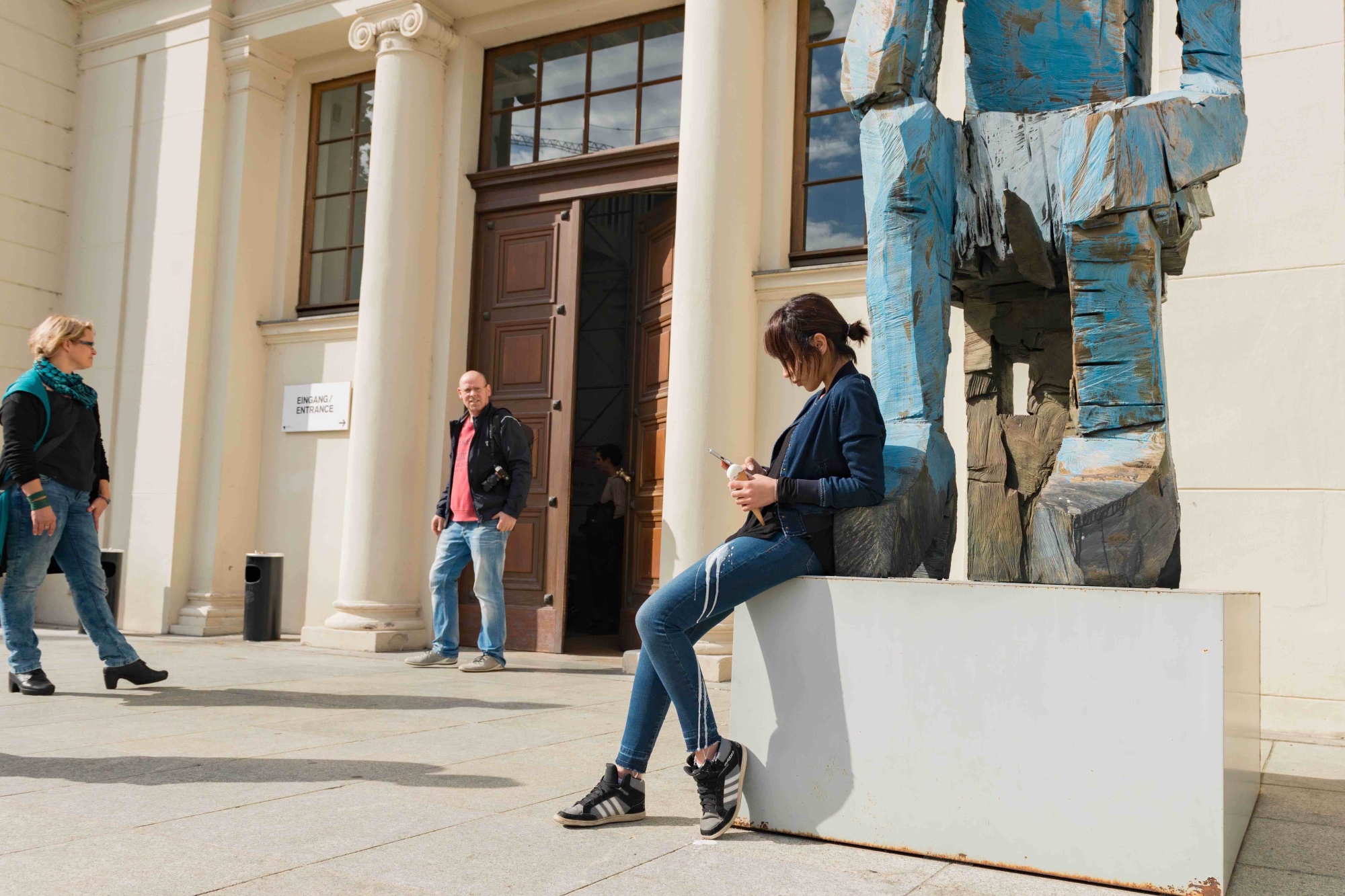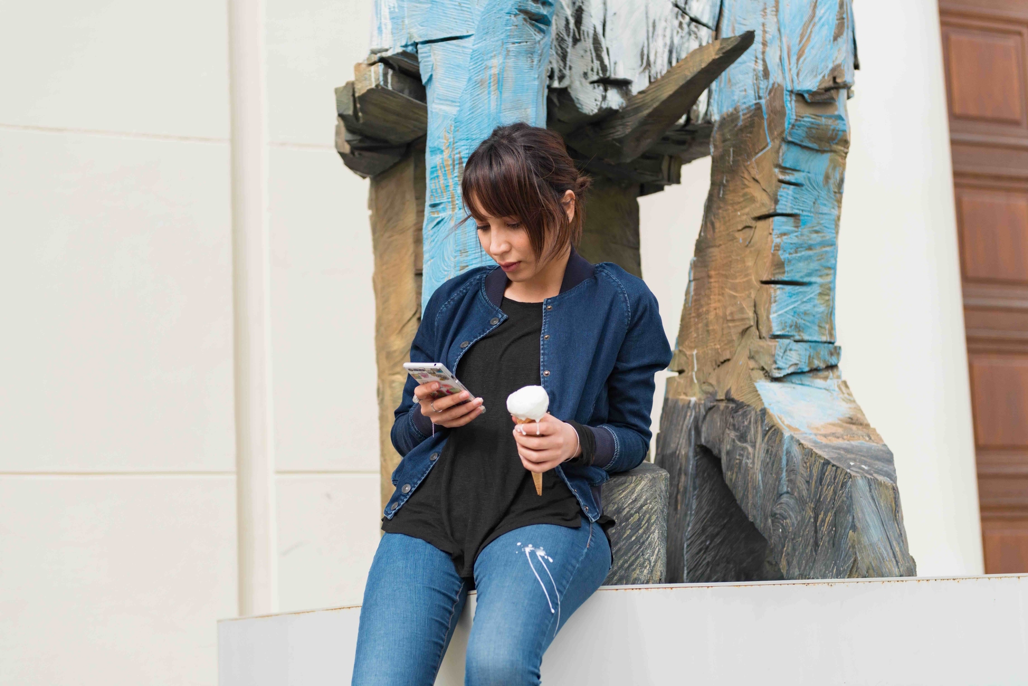 Jumana Ridhas surreale Performance ist ein Reenactment der neuen Wirklichkeit. Sie hält ein Eis in einer Hand und tippt auf ihrem Handy in der anderen Hand. Während sie aufs Handy schaut und kommuniziert, scheint sie das Eis vergessen zu haben. Das Schokoladeneis schmilzt langsam in der Waffel in ihrer Hand dahin, tropft auf den Boden, auf ihre Jeans, auf ihre Schuhe, bis zum letzten Tropfen.
