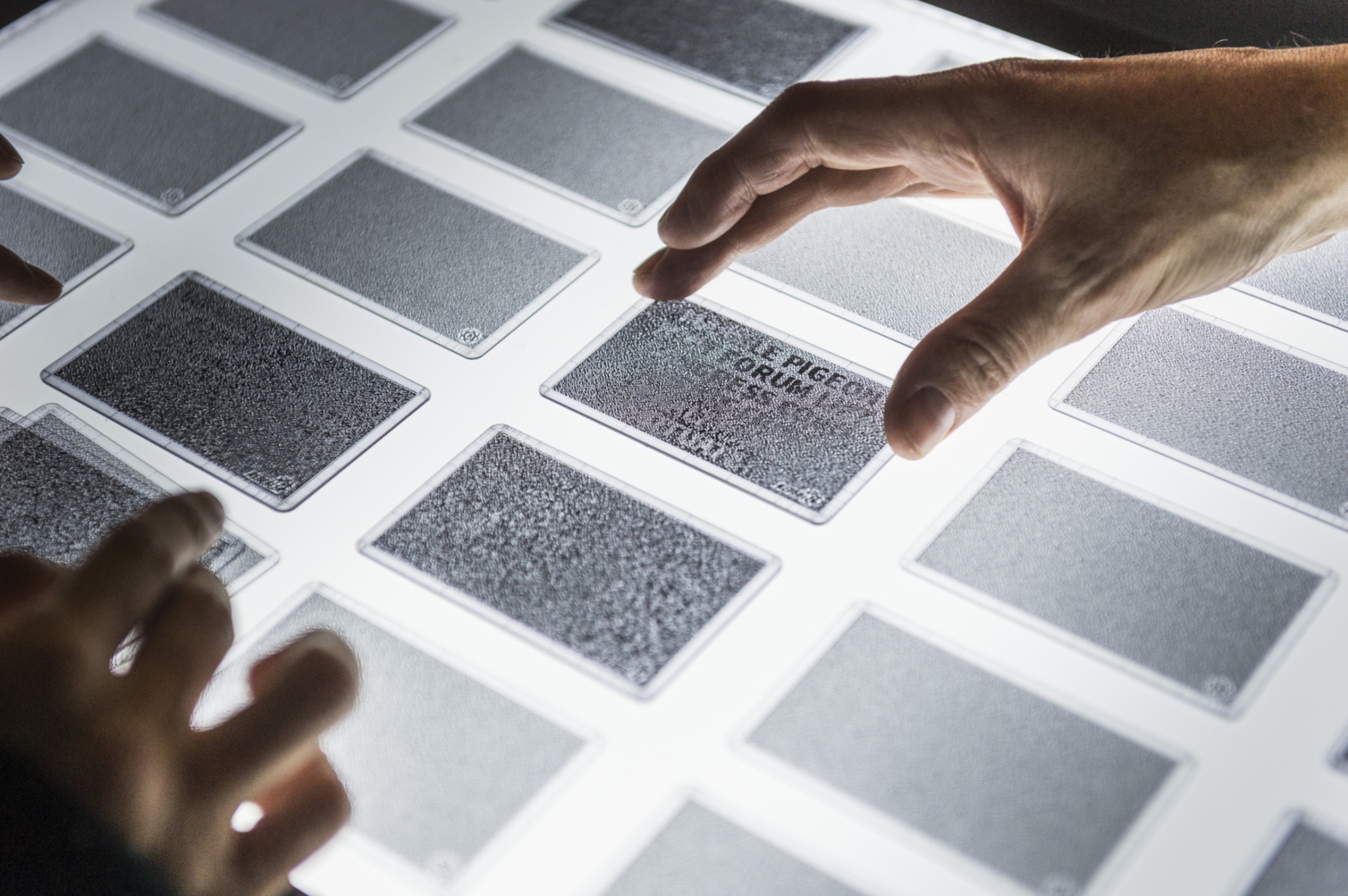 Revealer was first created in homage to inventor Emanuel Goldberg and exhibited at the Dresden Technical collections. Goldberg contributed immensely to many aspects of image technology early last century. Before having his trajectory interrupted by the Nazis, he invented the first search and pattern-detecting machine, which he called a Statistical machine. His work helped catalyze the birth of information technology. Along with the many benefits that this new field brought to society, it has also become a powerful tool in targeting minorities and dissent, aiding in their respective surveillance. With the increasing political instability in many parts of the world, the possibility of disappearing into noise is a survival strategy for many. Keep your poems safe!