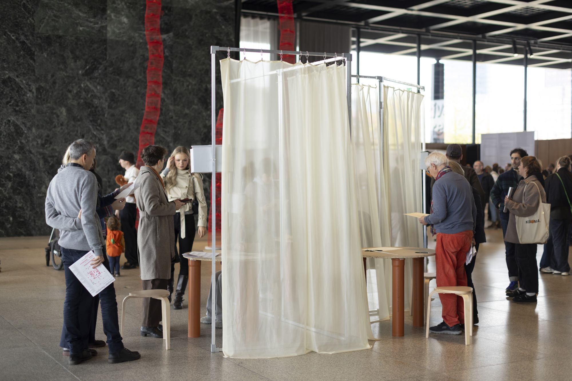 At an analogue mail station set up inside the Neue Nationalgalerie, visions of the future posted from the city of Kiel are organized by theme. Festival visitors can choose one of these letters and write a personal reply, which will be delivered to the original sender.