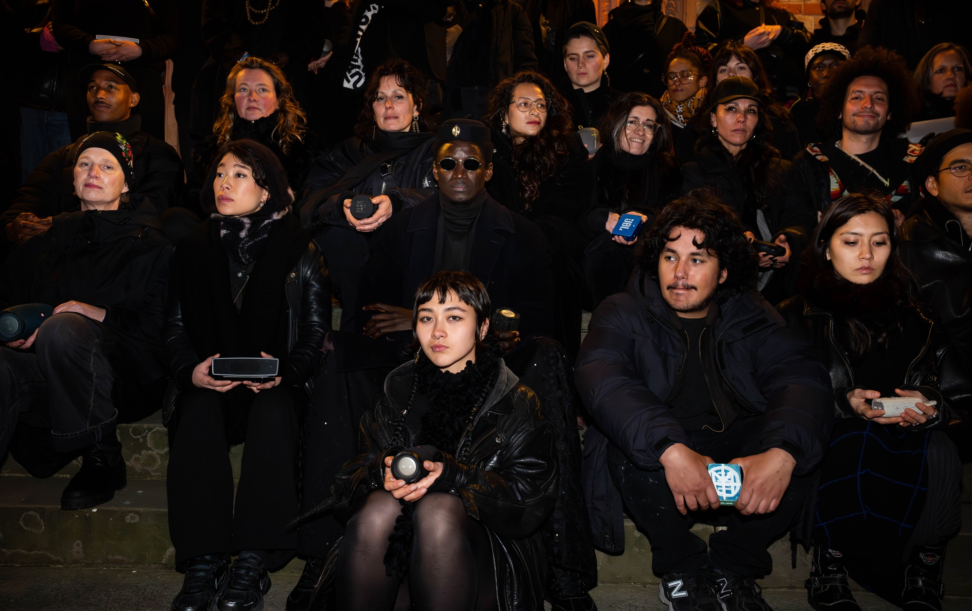 ►The artists carry loudspeakers.