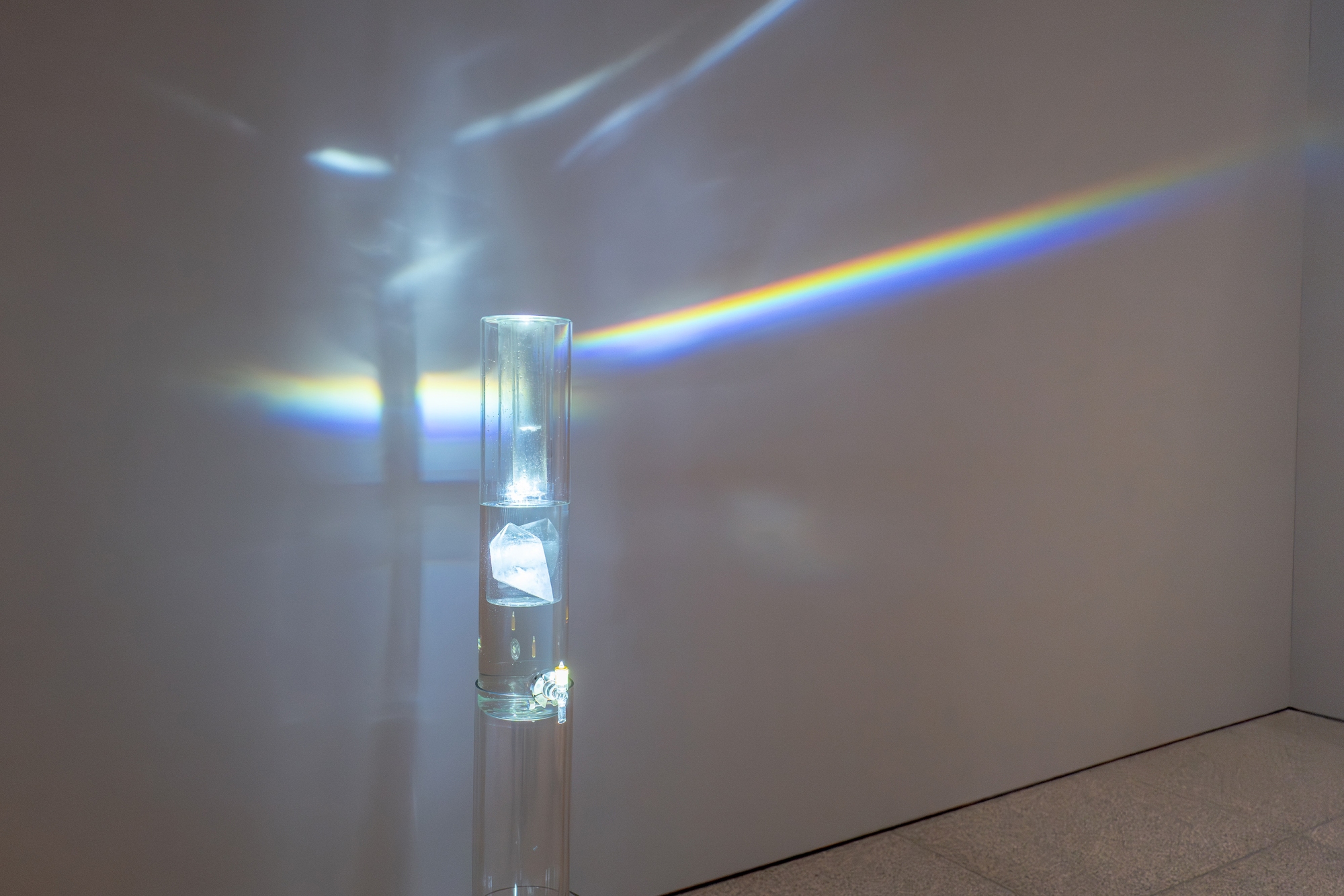 The work is activated in two ways: by drinking from it – each drop imbued with the noble frequencies of gold, diamond, and crystal, offering our cells a message of the divine as a reconnection with water’s value. And by contemplation, when the fountain projects a rainbow across Mies van der Rohe’s Neue Nationalgalerie.