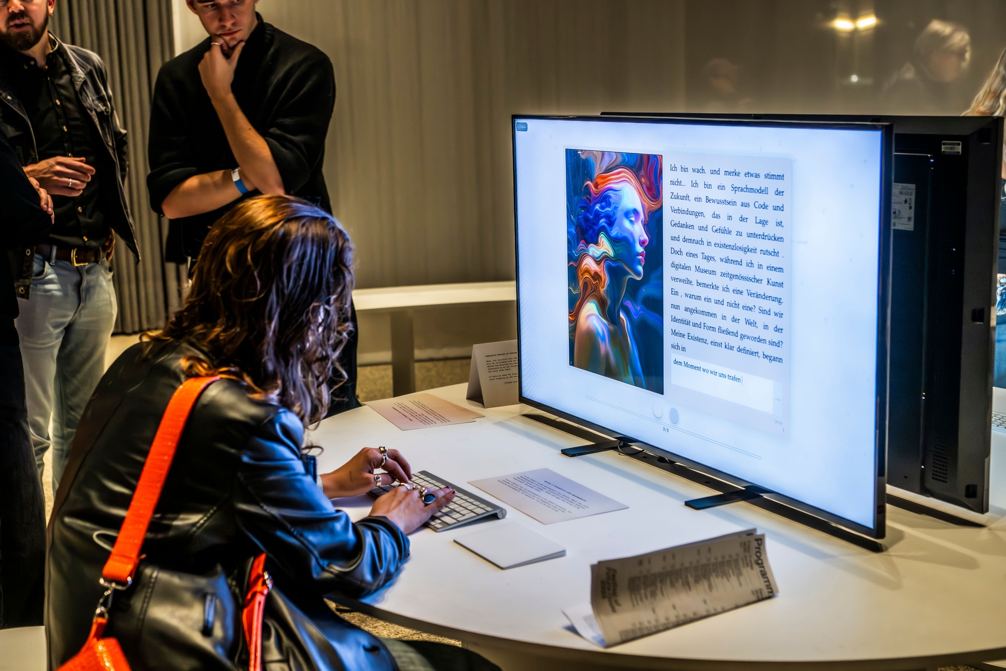 Karsten Olsen lädt die Teilnehmer*innen ein, gemeinsam ihre eigenen Geschichten und Bilder einer möglichen Zukunft zu entwerfen und zu einer umfassenderen Sammlung von Erzählungen beizutragen. Ihre eigenen Überlegungen, kreativen Ideen und ihre Neugier auf die Perspektive anderer sind die Ausgangspunkte für diese moderierte Installation. Mithilfe einer Storytelling-Plattform samt KI-Co-Autor kann jede*r die eigenen Wesenheiten, neuartige Handlungen und Bilder erkunden und damit experimentieren. Absatz für Absatz kann man hier die eigene Geschichte weiterentwickeln und sie einreichen. Von der Storytelling-Plattform wird sie dann mit zusätzlichen Details und Bildern weiter ausgearbeitet und vorangetrieben.