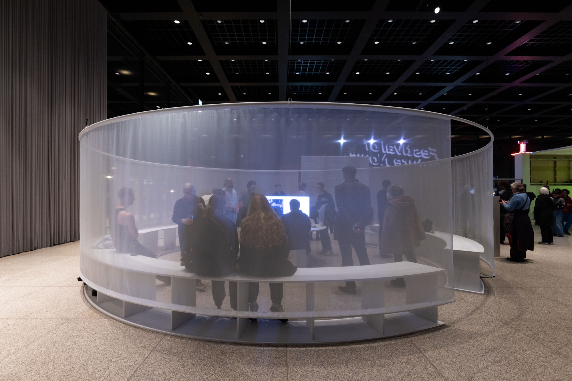 Jede*r ist eingeladen, in den Geschichten verschiedene Perspektiven und Standpunkte zu erkunden, während die Moderator*innen einen auf dem Weg vom eigenen Beitrag zum Buch mit gesammelten Geschichten begleiten, das jederzeit online zugänglich ist. Inspiriert davon, dass kulturelle Praktiken des Geschichtenerzählens Zeitalter und Perspektiven durchqueren können, lädt die Installation die Besuchenden dazu ein, mit den Auswirkungen zu experimentieren und über sie nachzudenken, die kleine persönliche Beiträge auf das umfassendere kollektive Bild der Zukunft haben können.