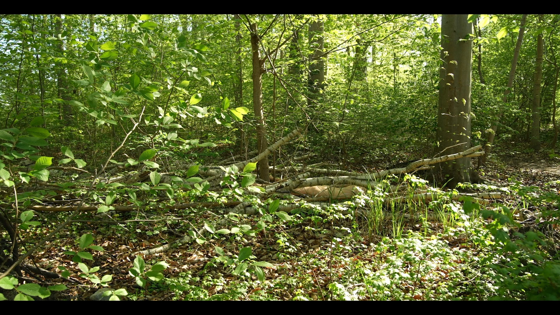 Die Videoarbeit von Linn Johanna Johannsen thematisiert die tiefe Verbundenheit von Mensch und Natur. Ein nackter Körper verweilt still im Wald und verschmilzt mit seiner Umgebung. Untermalt von den Klängen des Waldes entsteht ein immersives Erlebnis, das die wechselseitige Beziehung spürbar macht und den Menschen als Teil eines größeren ökologischen Ganzen präsentiert.
