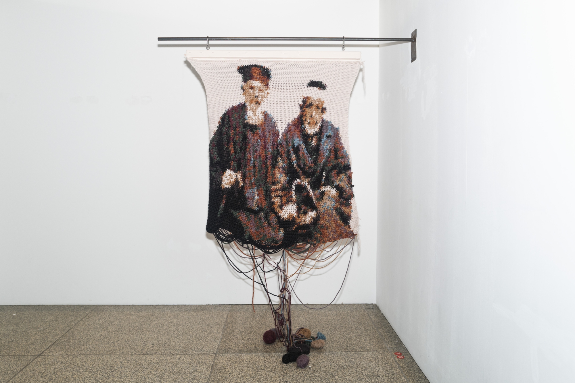 Μπλεγμένη Συμβίωση (Entangled Symbiosis) portrays the cultural coexistence of the Cypriot Greek and Cypriot Turkish communities in Cyprus’s past. Based on a photograph from the 1940s, it depicts a Greek Cypriot Orthodox priest and a Turkish Cypriot Muslim imam. The work showcases the pre-invasion shared bonds of the two Cypriot communities, Turkish and Greek, which have been systematically ‘eradicated’, leading to a collective amnesia of the peoples of Cyprus. Even though the picture stems from the past, it constitutes an attempt at recovering its untold narratives and should be viewed as a utopian prophecy depicting the future.