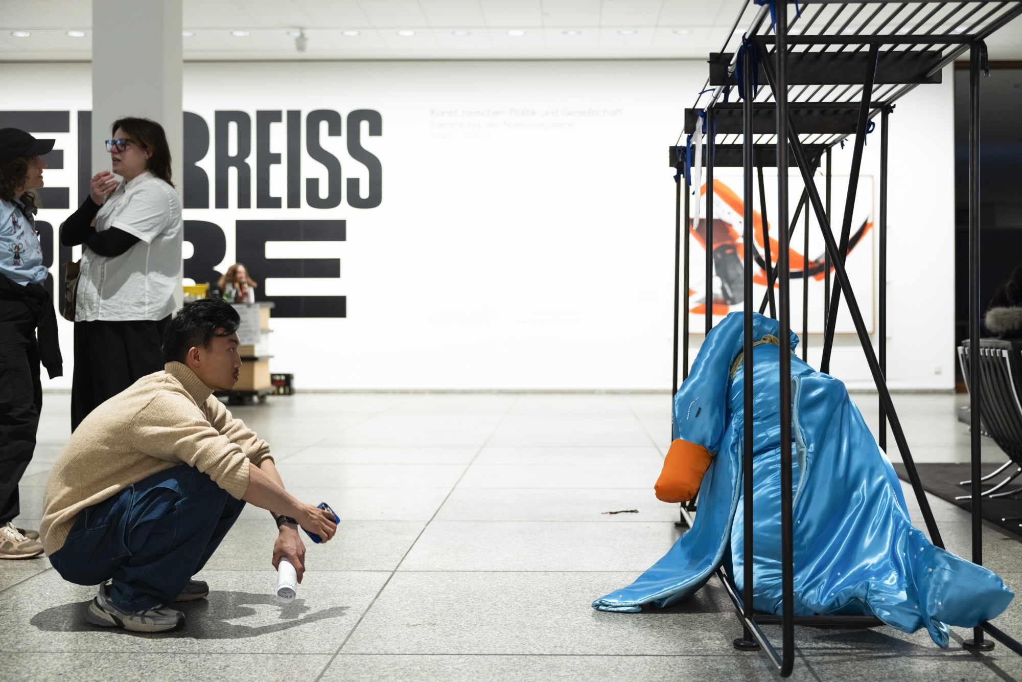 Three soft toys made for the festival by Ramona Kortyka can be borrowed as temporary exhibition companions. Taking on this small task of caregiving enhances borrowers’ festival visit, their relation to space, and their interactions with other visitors. The act of carrying and displaying the soft toys transforms the museum into a space of solicitude. Drawing on the thinking of bell hooks, the work of care is viewed here as an act aimed at dismantling hierarchies and strengthening community – both increasingly important for peaceful coexistence in the future.