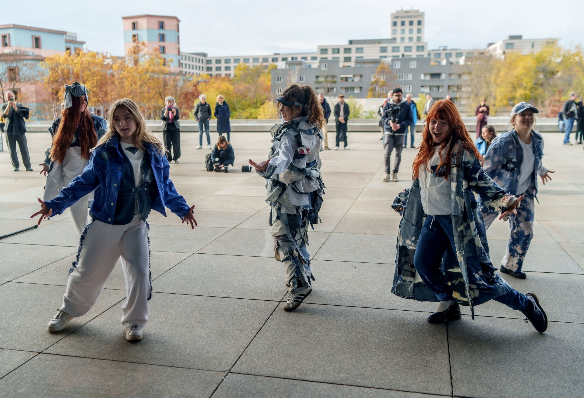 Raul Walch’s performance piece Moving Together in Time was created in collaboration with the youth of Berlin. Together, they designed costumes and brief choreographies that deal with places in the city’s former eastern and western halves. The piece centres on processes of urban change and the question of how urban spaces can be appropriated and reshaped. Whom does the city belong to? Who is allowed to shape it – and who decides? What does a city worth living in look like, and what happens when the appearance of our cities is increasingly determined by investors?
