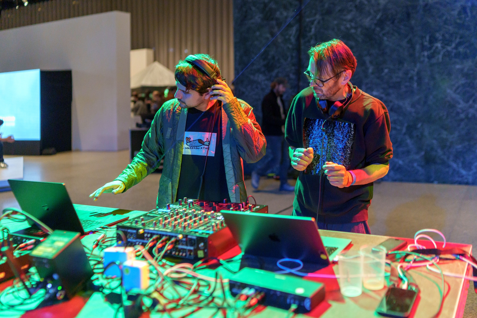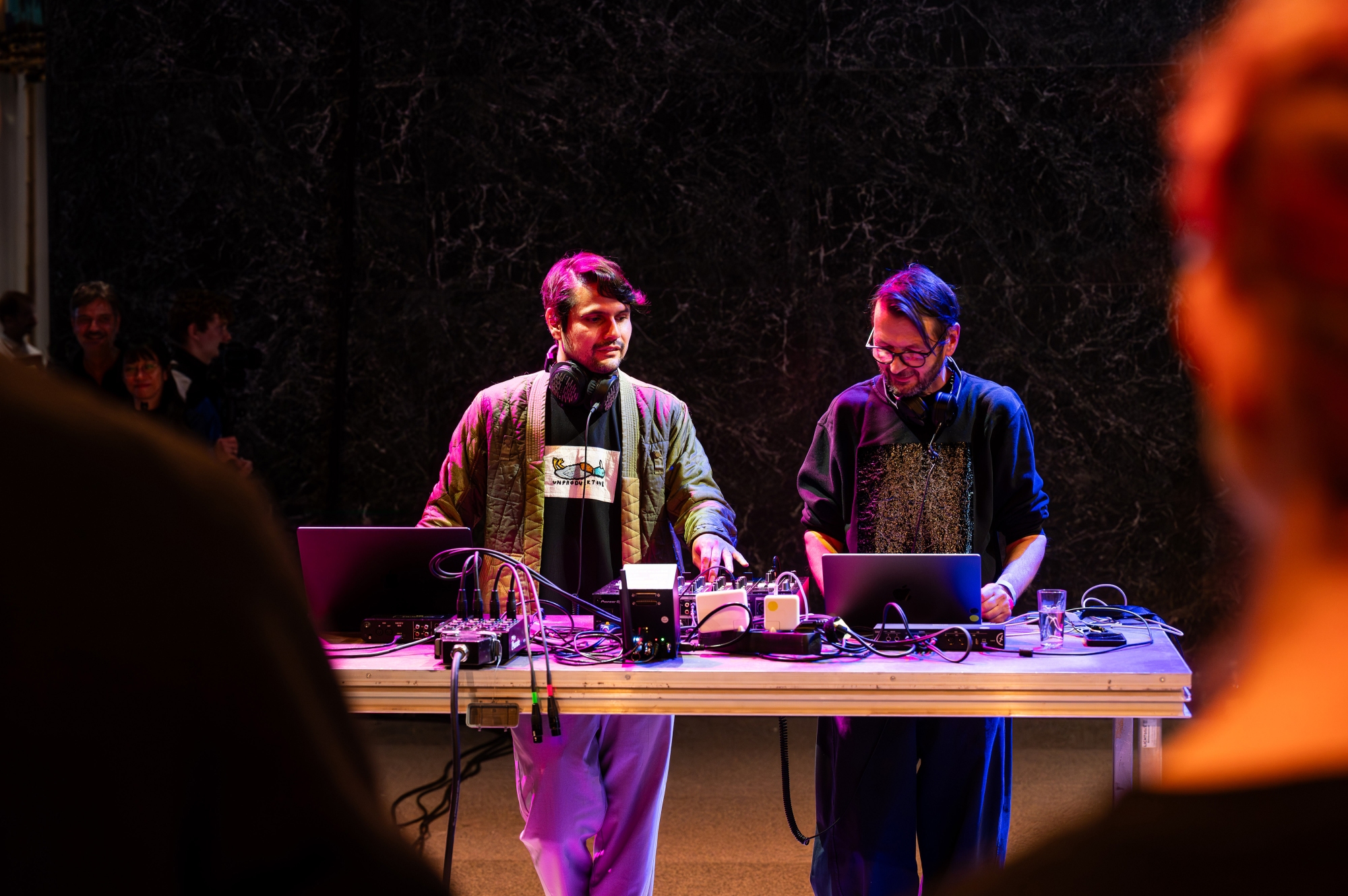 Gemeinsam verweben Robert Lippok und Lucas Gutierrez ihre kulturellen Sensibilitäten zu einem DJ-Set, das von verschiedenen Hintergründen und einem geteilten Erfahrungsraum der hybriden Szene Berlins geprägt ist. Struktur und Improvisation, Puls und Raum, europäische Abstraktion und südamerikanische Intensität treffen in einem fließenden, kontrastreichen Dialog aufeinander, in dem sich Klang, Rhythmus und Atmosphäre in permanentem Fluss befinden, während sich eine Vielzahl von Erfahrungen und Klangtraditionen überschneiden und entfalten.